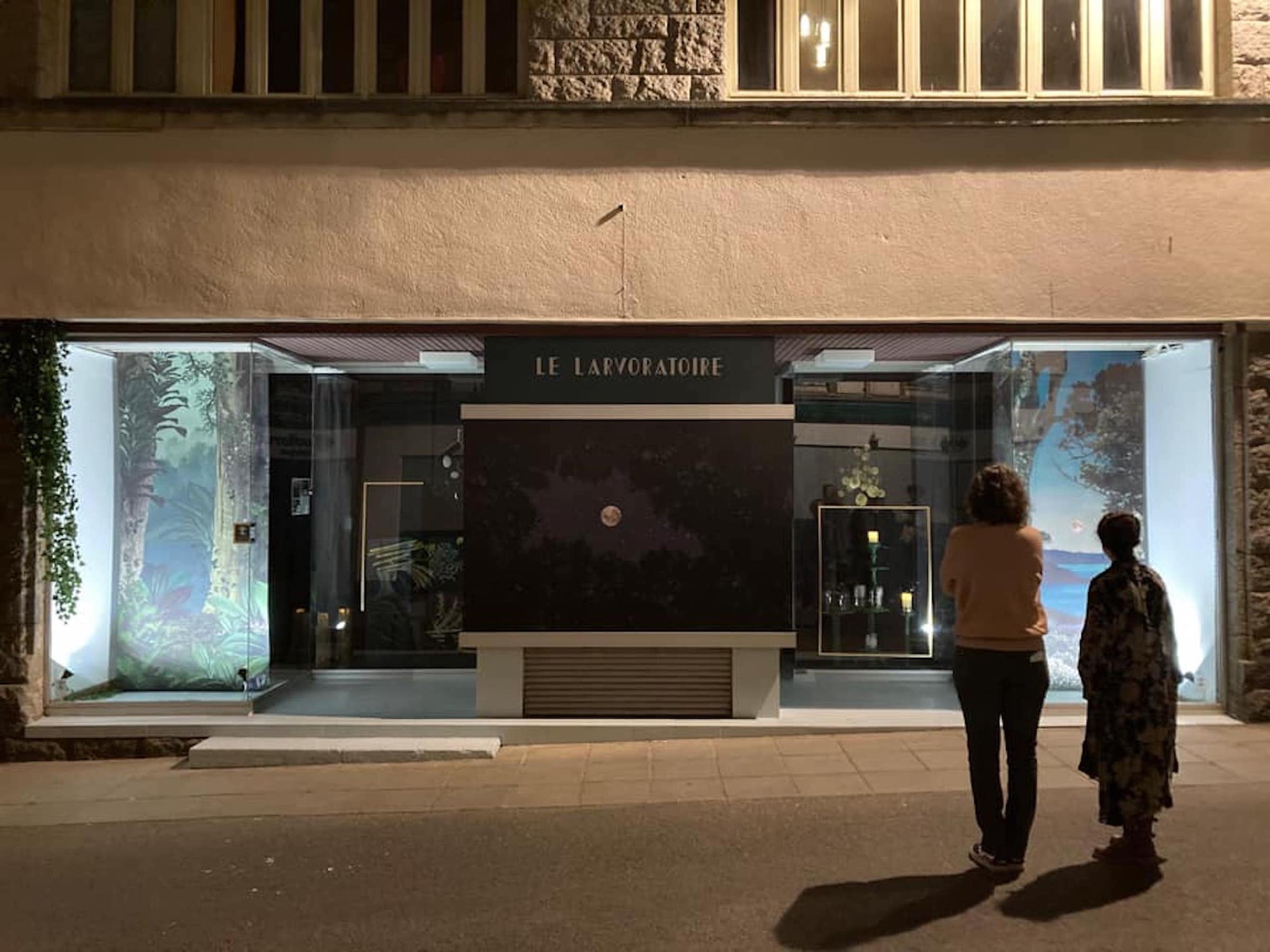 Et puis la nuit est tombée. Les vitrines se sont allumées. Des amis sont arrivés, des passants se sont arrêtés. Dans le ciel, la lune est montée. On s’est regardées avec Yana, tellement heureuses de notre travail et du résultat ! Mission accomplie. L’univers Breizh Witch allait vivre en ville pendant que le Larvoratoire ferait de beaux rêves pendant son sommeil (un demi-sommeil car derrière les décors s’organise une exposition rétrospective qui ouvrira ses portes le 25 août prochain…).