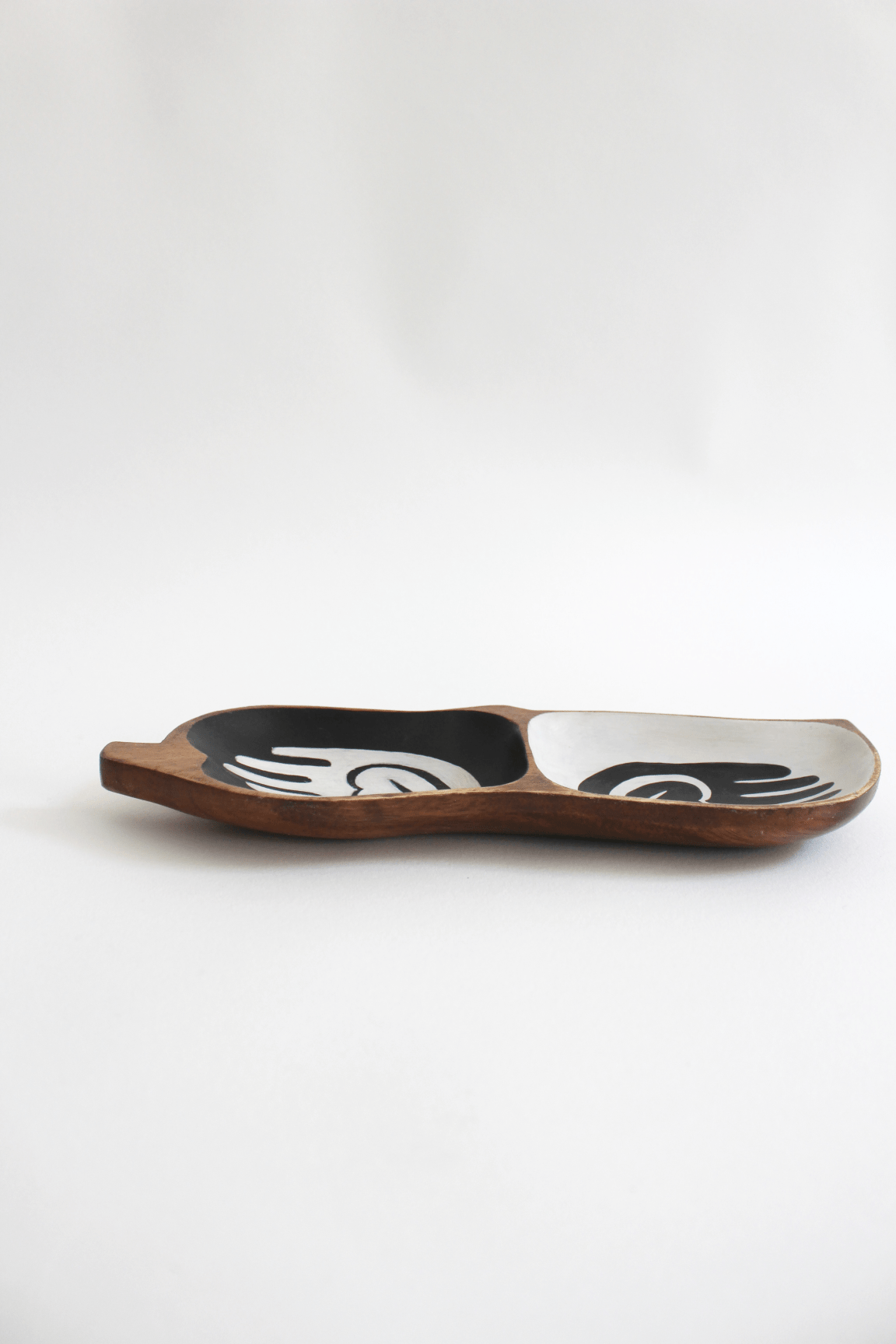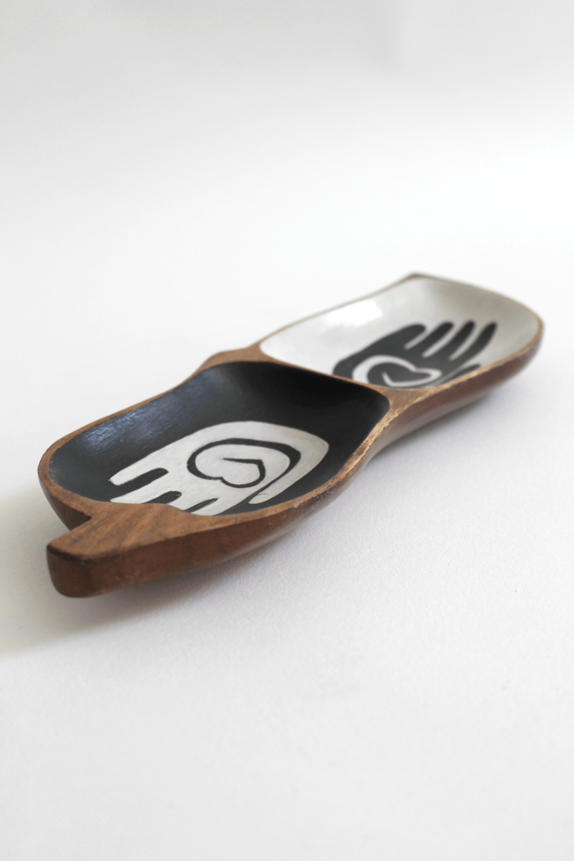 DORN I. Vide-poche en bois exotique, décor peint à la main.