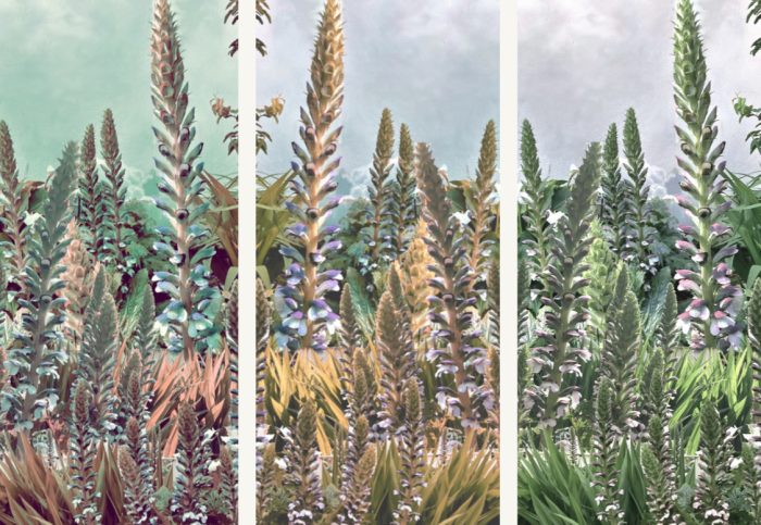 ACANTHEA se décline en trois coloris: émeraude, ocre jaune et vert verdure.
